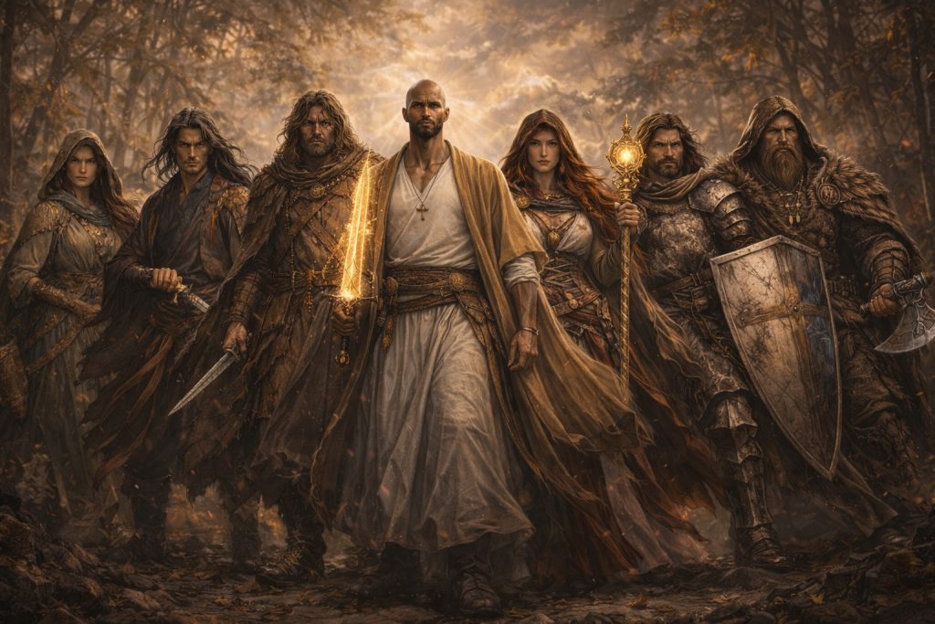 As a reluctant leader, Jovias bears the burden of command as a perpetual wound. He values order, restraint, and compassion, even when such compassion comes at a high price. Surrounding him are the Seven, all uniquely broken and formidable: Kyros, the storm-blooded berserker who mocks fate; Ioel, the silent assassin devoid of hatred; Angelica, a radiant healer whose unwavering faith surpasses her physical limits; Galal, a bearer of truth whose words sting deeper than blades; Anani, the archer who finds mercy where others see weakness; and Auriel, a judge haunted by the consequences of justice.